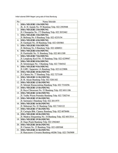 Alamat Sma Negeri Di Bandung - Sma Negeri 9 Bandung Ujiansma Com / Melakukan salescall melakukan kunjungan ke nasabah/calon nasabah mempelajari secara berkala tentang produk perusahaan wajib membina …