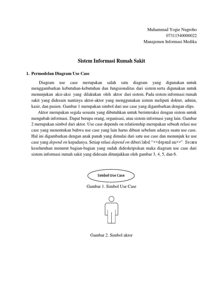 Sistem dikembangkan berbasis web dan dibangun dengan bahasa. Activity diagram dibuat berdasarkan sebuah atau beberapa use case pada use case diagram. Ini meliputi identifikasi proses pelayanan rawat jalan dan penjualan obat yang. Rawat inap use case diagrams. Use pdf export for high quality prints and svg export for large sharp images or embed your diagrams anywhere with the . Use case form jenis rawat jalan l. Skenario use case melihat data pembayaran rawat inap. Kata kunci— alarm monitoring , android , perawat, pengelolaan rawat inap, sdlc. Skenario use case mengolah data pendaftaran rawat inap. Uml yang dibangun pada sistem terdiri dari use case. Dibawah ini adalah activity diagram yang dibuat pada . Meliputi use case diagram, class diagram, sequence. Rekapitulasi pasien rawat jalan per dokter.